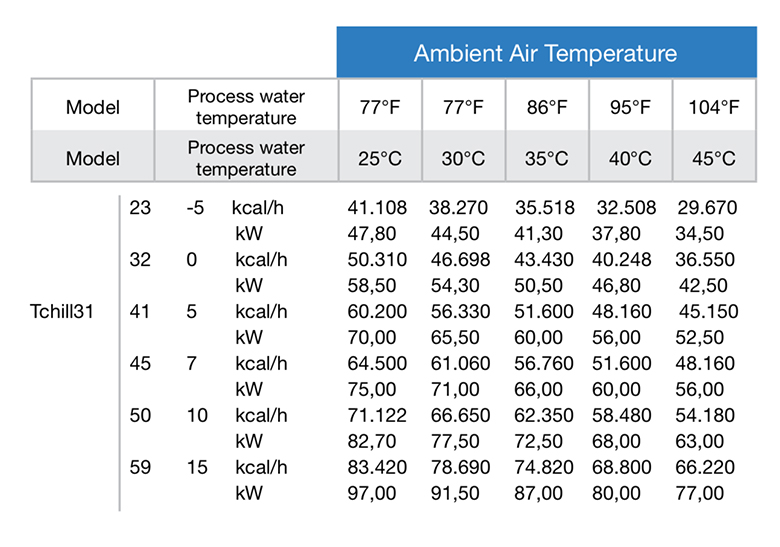 rendimento di un chiller al variare delle condizioni di temperatura